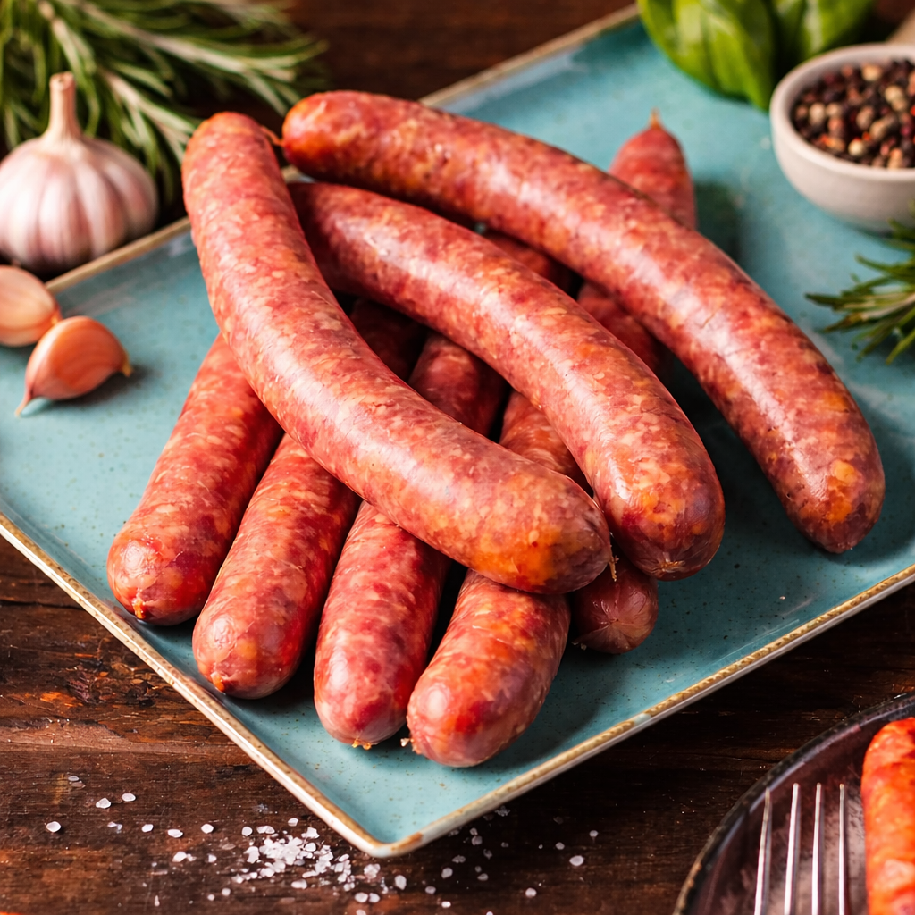 Der Pfefferbeißer ist eine herzhafte Rohwurstspezialität mit kräftiger Würze und charakteristischer Pfeffernote. Sorgfältig aus bestem Fleisch hergestellt und schonend gereift, entwickelt er sein typisch würziges Aroma und die feste Konsistenz, die ihn so beliebt macht.